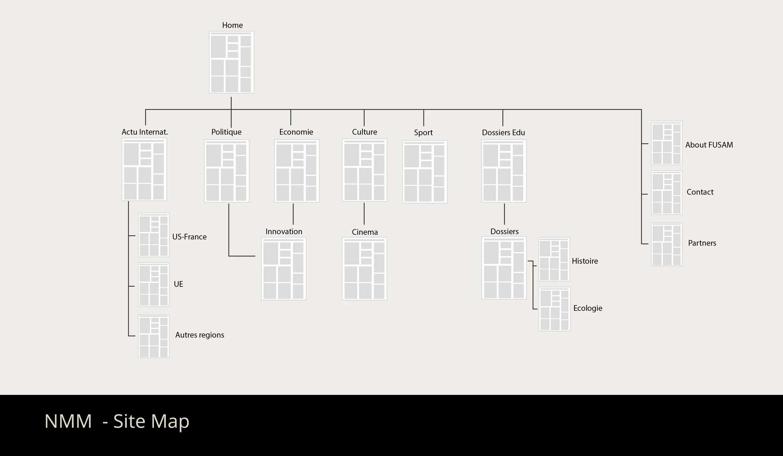 After the research steps, I started working on prototyping. Drawing many sketches, in order to explore various layout possibilities, and exposing the structure of the website through connected elements/pages.