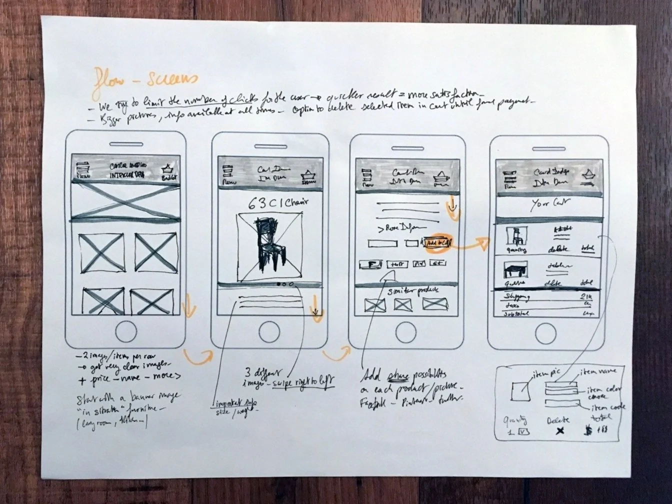 A survey was created, the questions targeted potential needs and goals. I also conducted phone interviews with five of the survey participants to learn more about their habits when it comes to buying interior decoration and furniture.