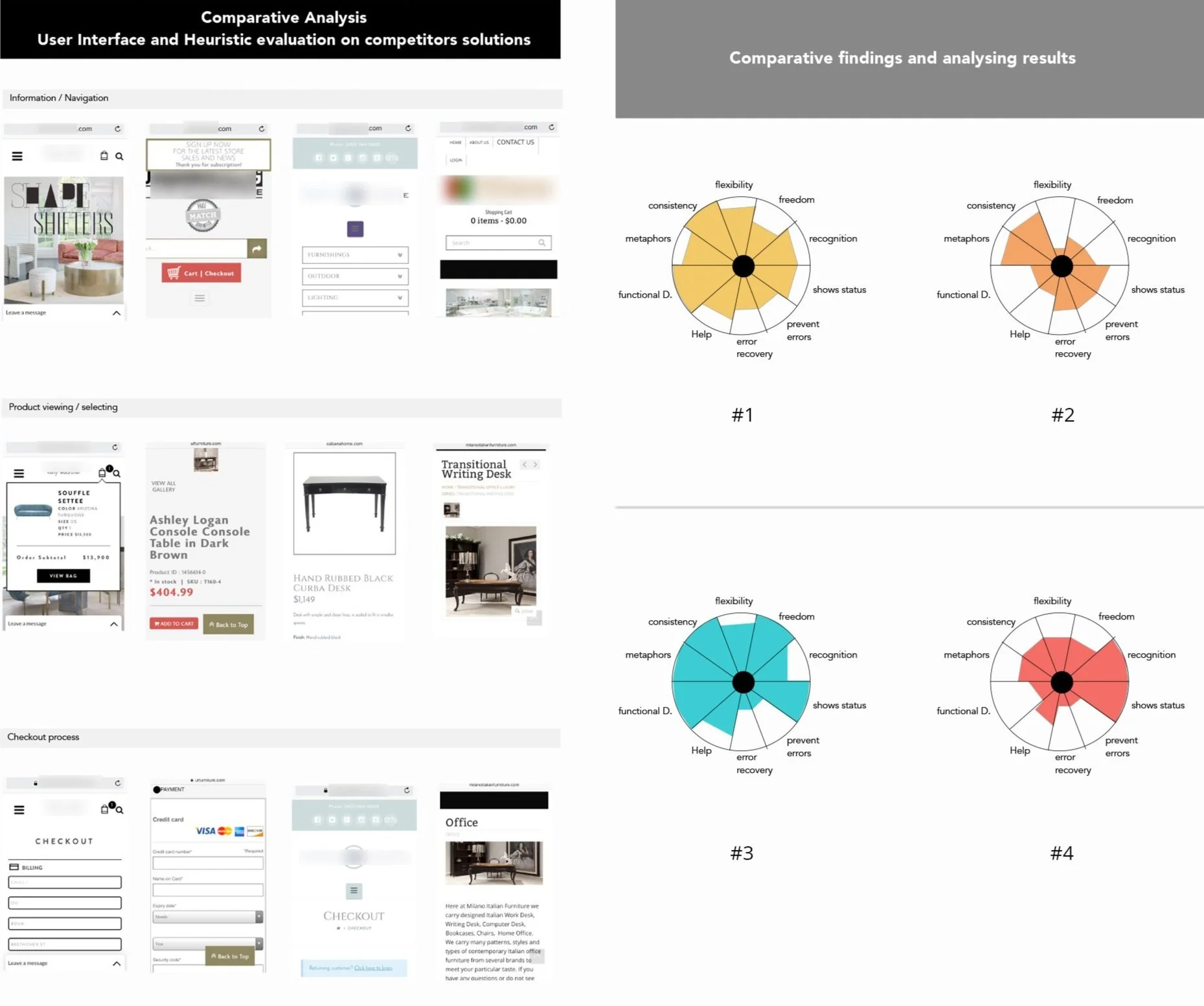 The first step was to research and evaluate the competition. I compared competitors websites for usability and main features, and conducted a heuristic evaluation.